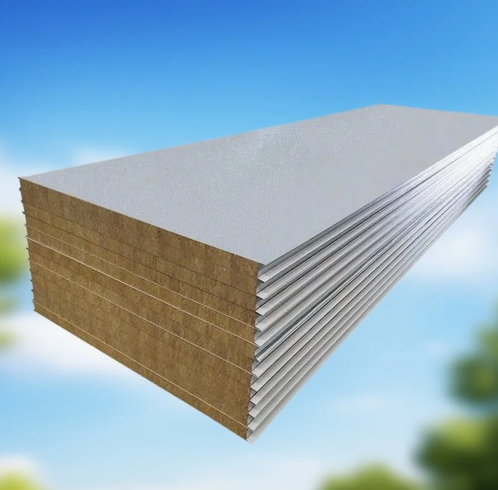 Custom Outdoor Soundproof & Fireproof 50mm Steel Rock Wool Sandwich Panels for Exterior Wall for Farm Cold Room & Warehouse