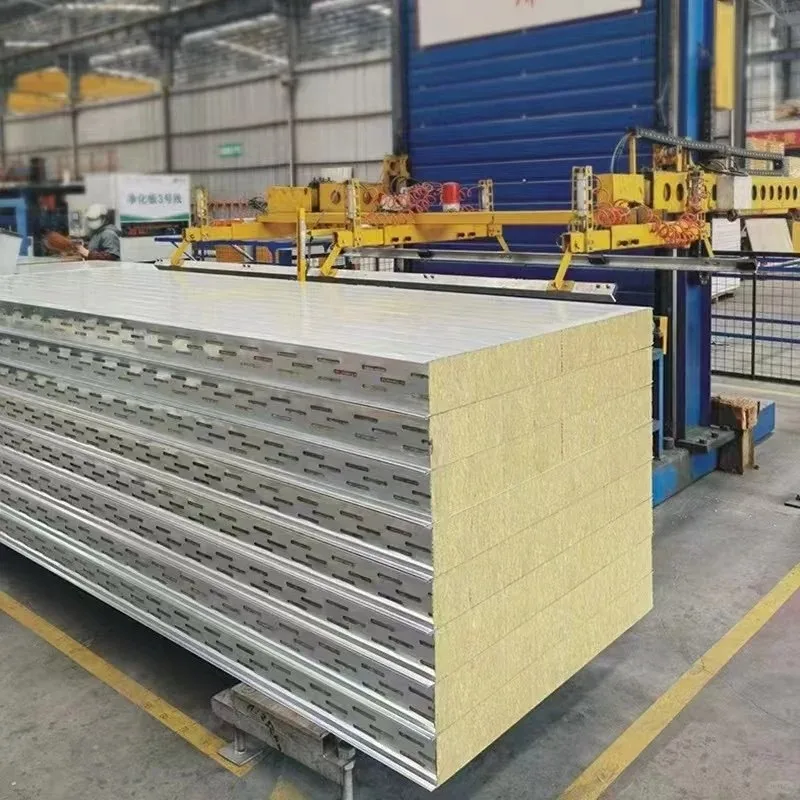 Color steel sandwich panel is a composite building board made by using two layers of colored coated steel plates as the panels, filling core materials such as rock wool, polystyrene, and glass wool in the middle, and through bonding or composite processes. It has the dual functions of structural support and functional protection and is widely used in the walls, roofs, partitions and other parts of various buildings.
