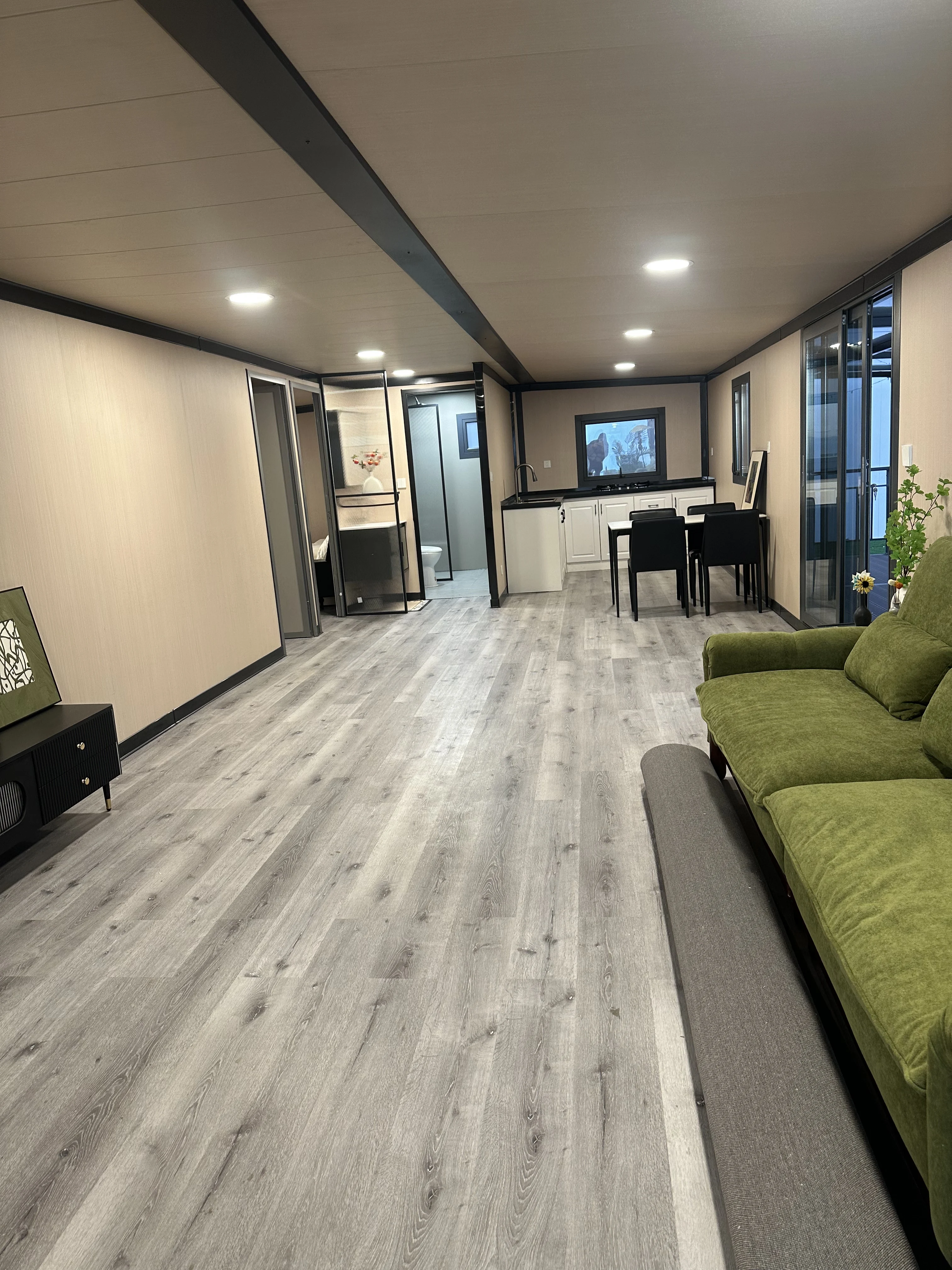 3mm Hot galvanized steel structure with 4 corner casts and 18mm fiber cement board; 1.8mm PVC flooring; 50mm rock woll, EPS or PU sandwich panel; Galvanized steel base plate.
